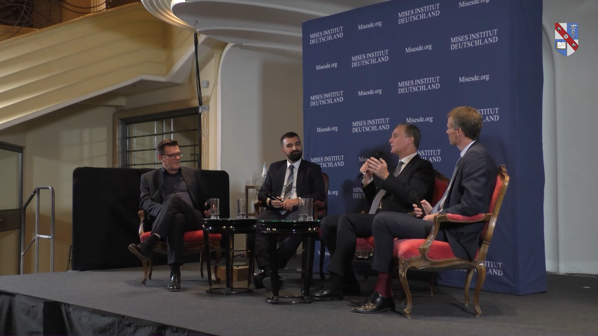 In der Schlussrunde der Veranstaltung diskutieren die Referenten über den argentinischen Präsidenten Javier Milei und Parallelen zu Deutschland, Inflation und Inflationsschutz, freien Währungswettbewerb, was „Intellektuelle“ in einer freien Marktwirtschaft anfangen könnten und anderes mehr. Die Themen und Fragestellungen, die auf dem Podium diskutiert wurden, stammten von den Konferenzteilnehmern und wurden zuvor schriftlich eingereicht.
