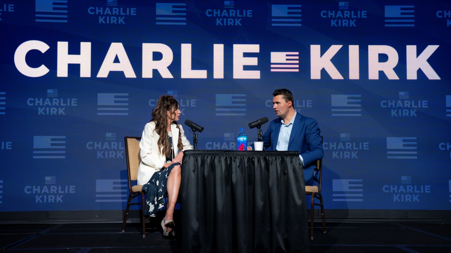 Titelfoto: DHS (Department of Homeland Security), Aufnahme von Tia Dufour, Public Domain, Quelle: Wikimedia Commons. Charlie Kirk in einem Interview mit der Ministerin für Heimatschutz Kristi Noem beim Turning Point USA 2025 Student Action Summit in Tampa, Florida (aufgenommen am 12. Juli 2025).