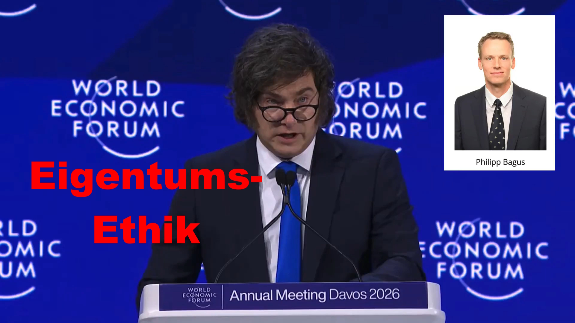 Titelfoto: World Economic Forum auf YouTube, Milei-Rede 2026 (bearbeitet)